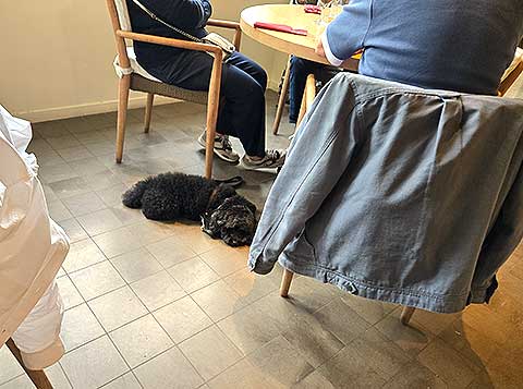 レストランの中でご主人さま達が食事をしている間、足元で伏しているワンちゃん。他のお客様も誰も驚かないし不満な態度を表している人もいません。これって日本では考えられない光景ですが、ここボンマルシェでは毎日見かける光景。ここが「ボンマルシェ」の素晴らしいところなんですね。お客様を信じるというメッセージが暗黙の了解であるように感じ、とても印象に残っています。