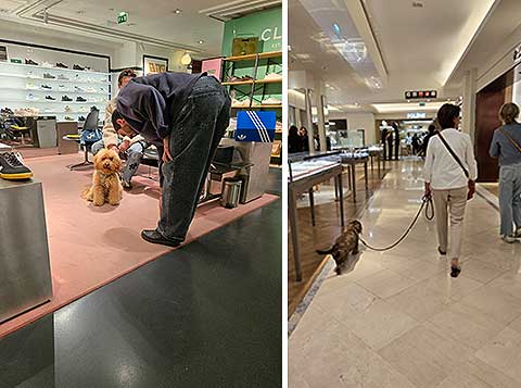 日本に戻ってからも気になって調べてみたら、公式な館内規則では「リード着用義務」を定めているそうです。それが黙認されている背景には、「優良顧客」に対する非公式な配慮(暗黙の了解)、顧客と百貨店側との高い信頼関係が維持されているということなんでしょうね。フランスならではの文化かもしれませんが、動物と人間との関係にも高い文化度を感じます。