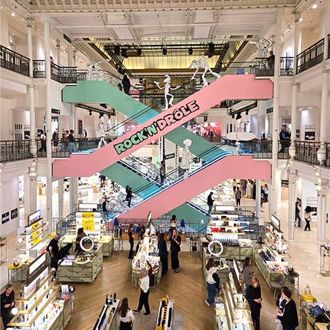 高級百貨店で”ロックンロール”?意外なテーマ展開でしたが、館内に入ってびっくり!エレガントで洗練されたボン・マルシェのイメージが、反骨精神や自由なエネルギーを持つロック魂と融合して、新鮮な魅力を生み出しています。まさに「驚き」と「楽しい」の連続!